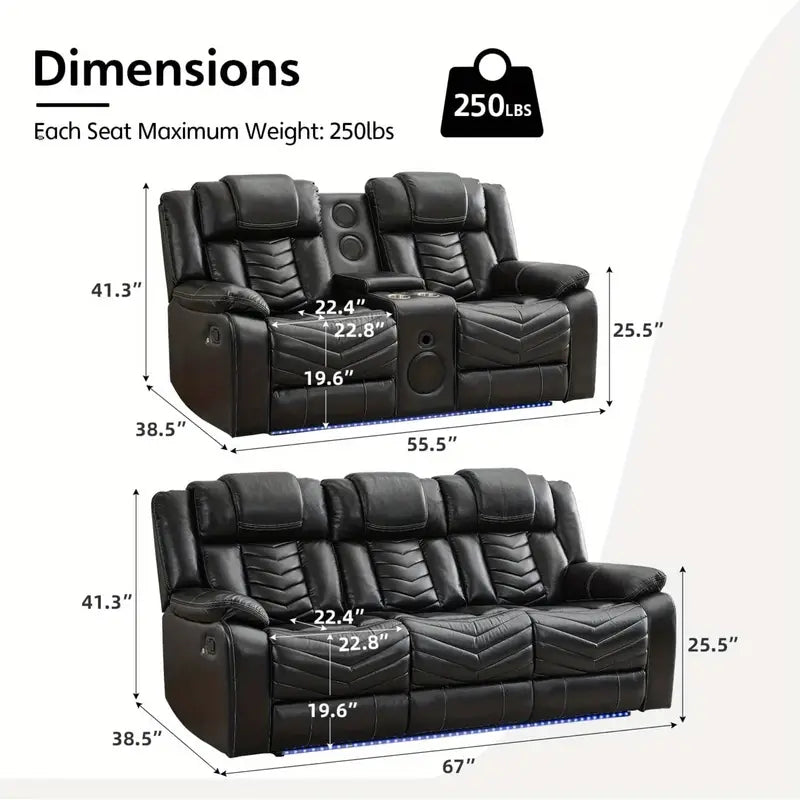 Reclining Sofa and Loveseat Seating Couch with Bass Speakers, LED Lights, Home Theater Love seat Sets with Console